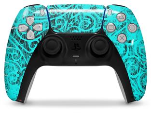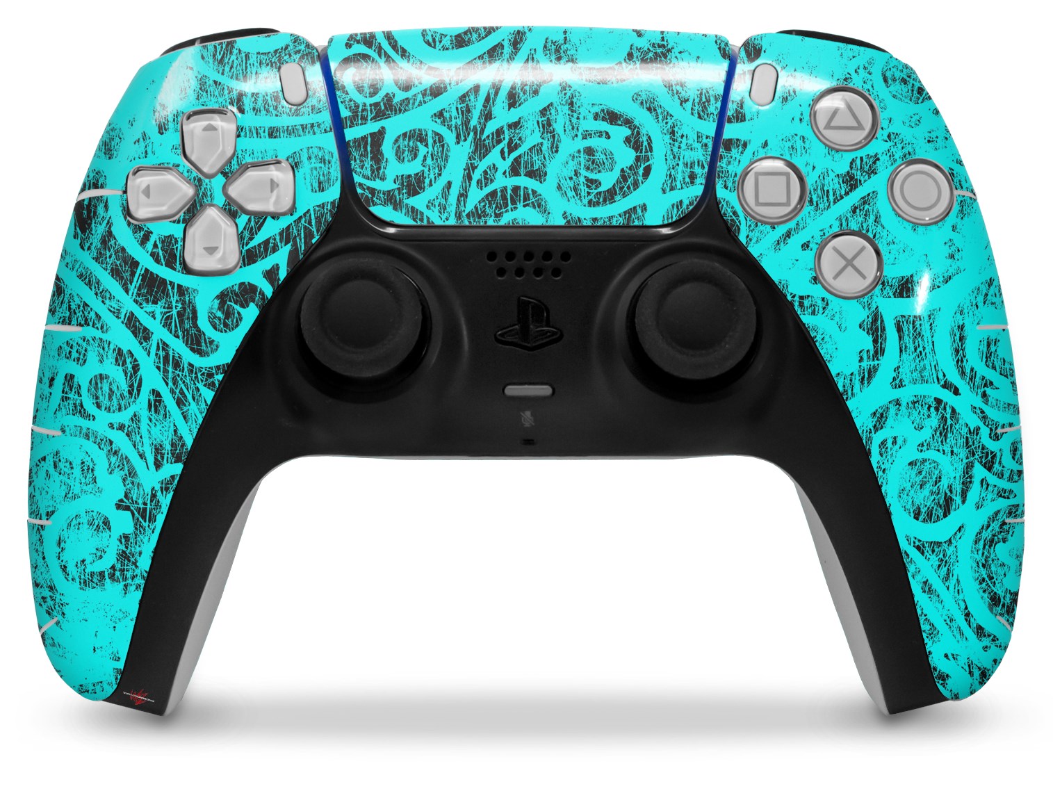 WraptorSkinz Skin Wrap compatible with the Sony PS5 DualSense Controller Folder Doodles Neon Teal (CONTROLLER NOT INCLUDED)