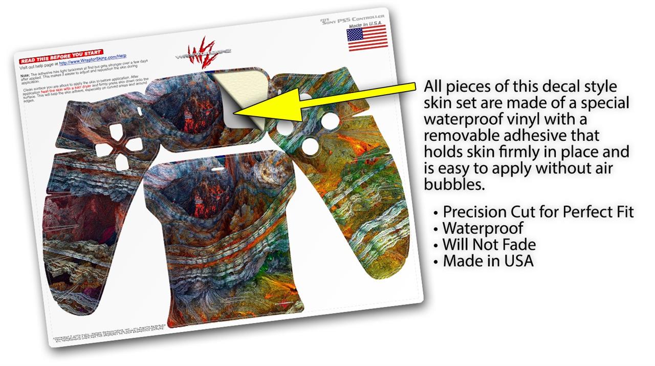 WraptorSkinz® skin wraps for the Sony Playstation 5 controller are printed using superb photo quality designs and vibrant colors printed with special fade resistant inks that last even in direct sun for years. WraptorSkinz are a composite of two layers of commercial grade materials. The bottom layer is a soft, flexible vinyl with a special removable adhesive that is easily positioned, applied without air bubbles. Next we print the bottom layer with UV protected, fade resistant inks that deliver superb photo quality designs in vibrant colors. Last, we bond a professional grade laminate over the entire skin adding a glossy protective finish. This product is not affiliated with or endorsed by Sony or the Playstation brand.