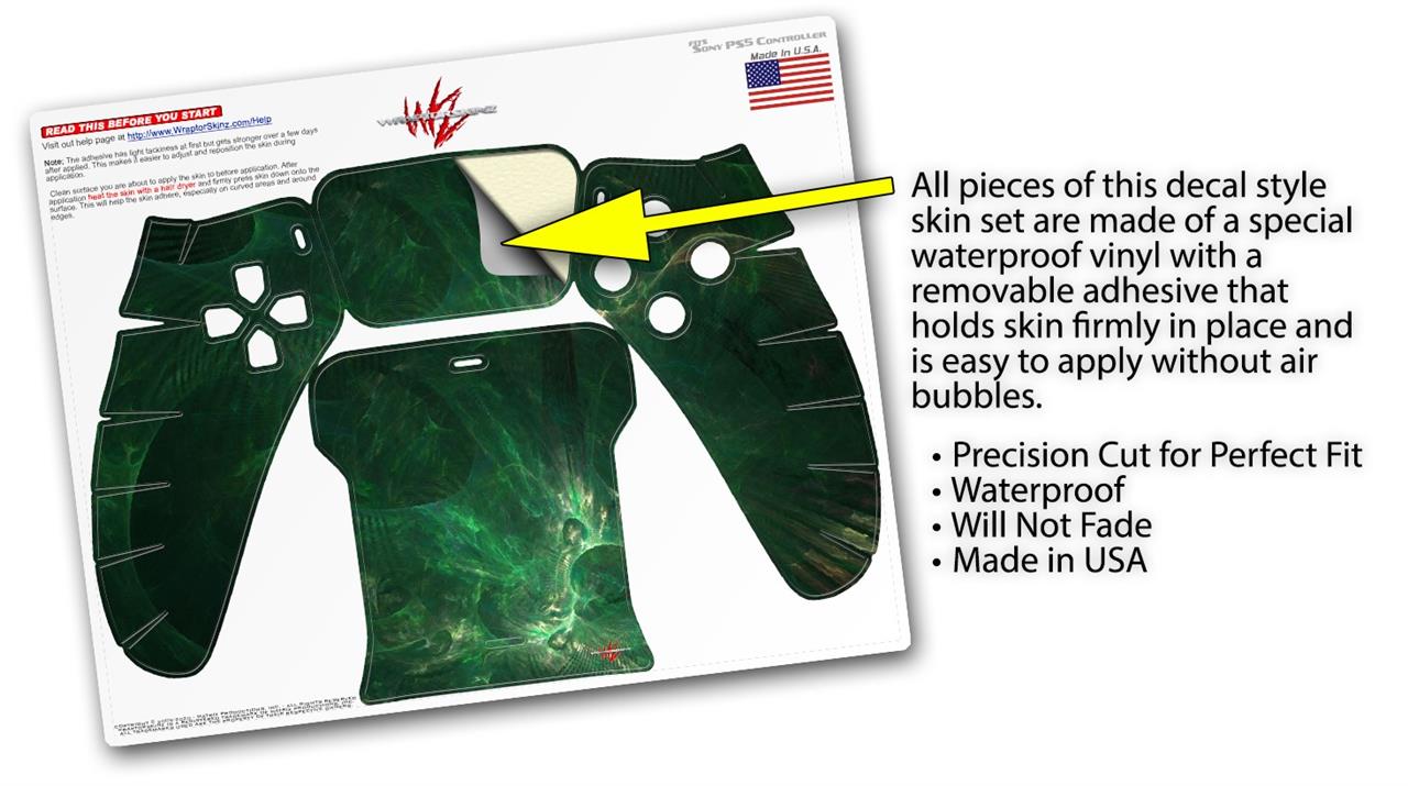 WraptorSkinz® skin wraps for the Sony Playstation 5 controller are printed using superb photo quality designs and vibrant colors printed with special fade resistant inks that last even in direct sun for years. WraptorSkinz are a composite of two layers of commercial grade materials. The bottom layer is a soft, flexible vinyl with a special removable adhesive that is easily positioned, applied without air bubbles. Next we print the bottom layer with UV protected, fade resistant inks that deliver superb photo quality designs in vibrant colors. Last, we bond a professional grade laminate over the entire skin adding a glossy protective finish. This product is not affiliated with or endorsed by Sony or the Playstation brand.