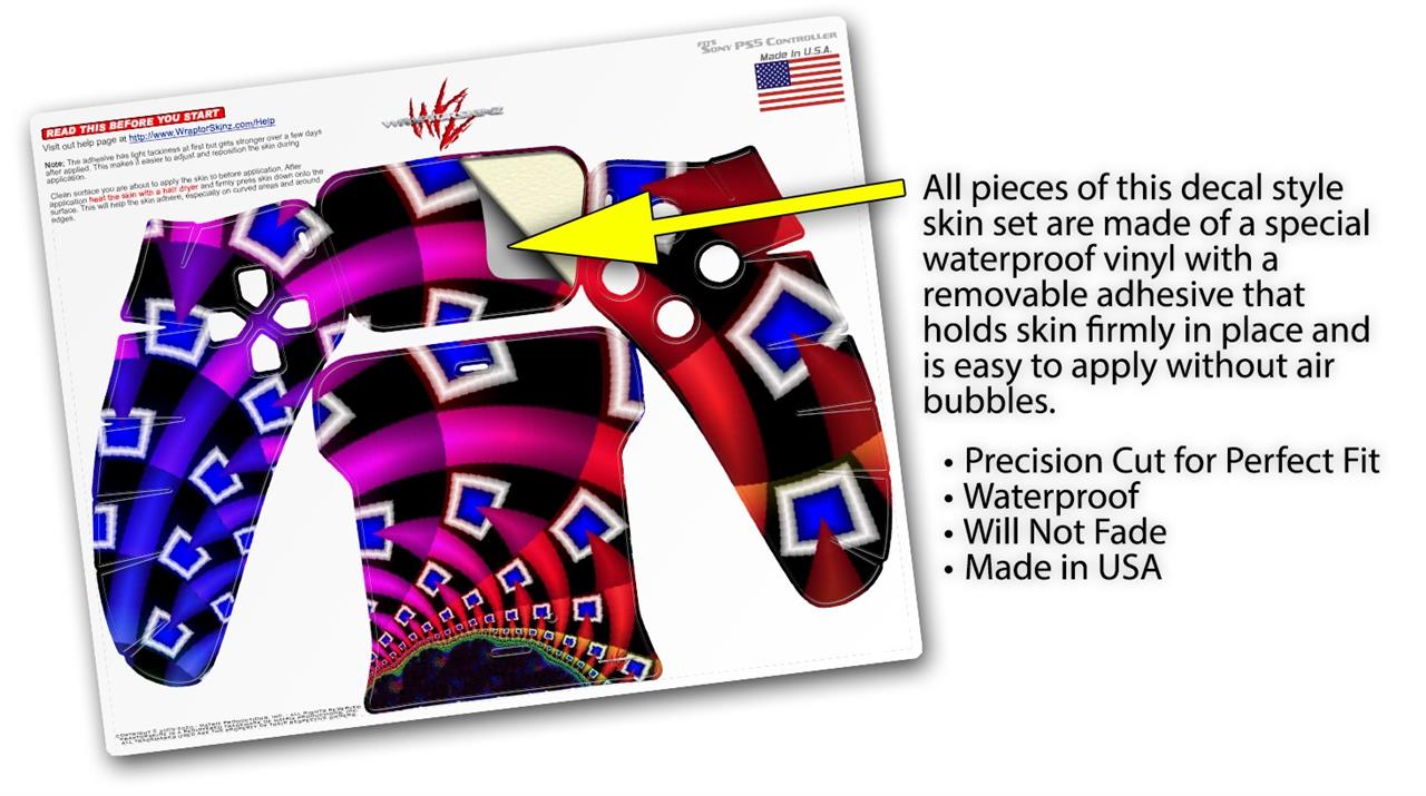WraptorSkinz® skin wraps for the Sony Playstation 5 controller are printed using superb photo quality designs and vibrant colors printed with special fade resistant inks that last even in direct sun for years. WraptorSkinz are a composite of two layers of commercial grade materials. The bottom layer is a soft, flexible vinyl with a special removable adhesive that is easily positioned, applied without air bubbles. Next we print the bottom layer with UV protected, fade resistant inks that deliver superb photo quality designs in vibrant colors. Last, we bond a professional grade laminate over the entire skin adding a glossy protective finish. This product is not affiliated with or endorsed by Sony or the Playstation brand.