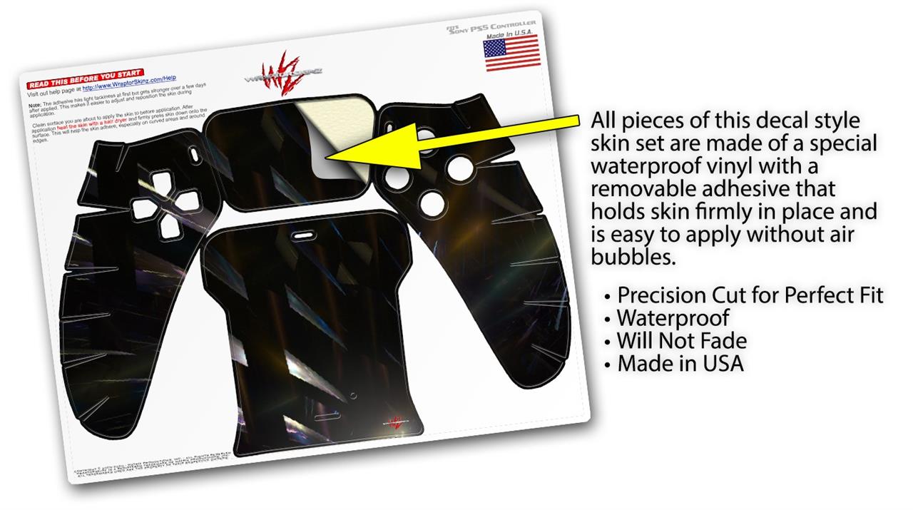WraptorSkinz® skin wraps for the Sony Playstation 5 controller are printed using superb photo quality designs and vibrant colors printed with special fade resistant inks that last even in direct sun for years. WraptorSkinz are a composite of two layers of commercial grade materials. The bottom layer is a soft, flexible vinyl with a special removable adhesive that is easily positioned, applied without air bubbles. Next we print the bottom layer with UV protected, fade resistant inks that deliver superb photo quality designs in vibrant colors. Last, we bond a professional grade laminate over the entire skin adding a glossy protective finish. This product is not affiliated with or endorsed by Sony or the Playstation brand.