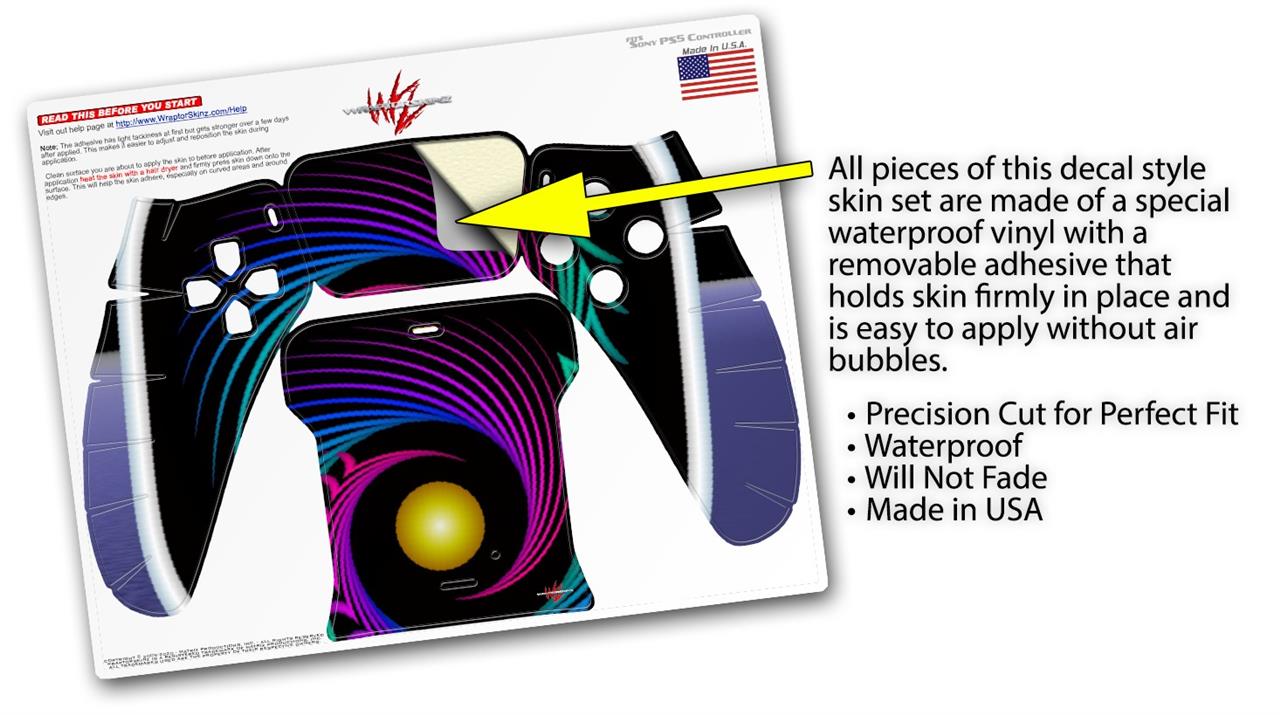 WraptorSkinz® skin wraps for the Sony Playstation 5 controller are printed using superb photo quality designs and vibrant colors printed with special fade resistant inks that last even in direct sun for years. WraptorSkinz are a composite of two layers of commercial grade materials. The bottom layer is a soft, flexible vinyl with a special removable adhesive that is easily positioned, applied without air bubbles. Next we print the bottom layer with UV protected, fade resistant inks that deliver superb photo quality designs in vibrant colors. Last, we bond a professional grade laminate over the entire skin adding a glossy protective finish. This product is not affiliated with or endorsed by Sony or the Playstation brand.