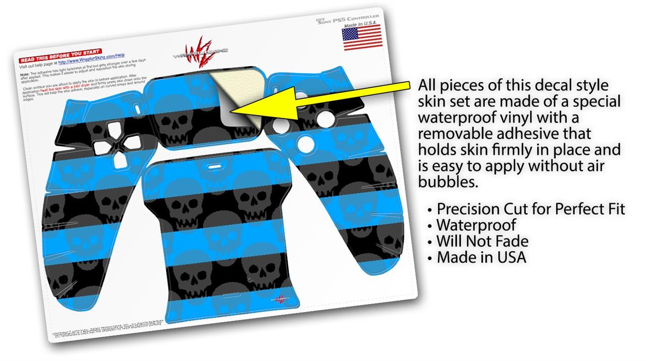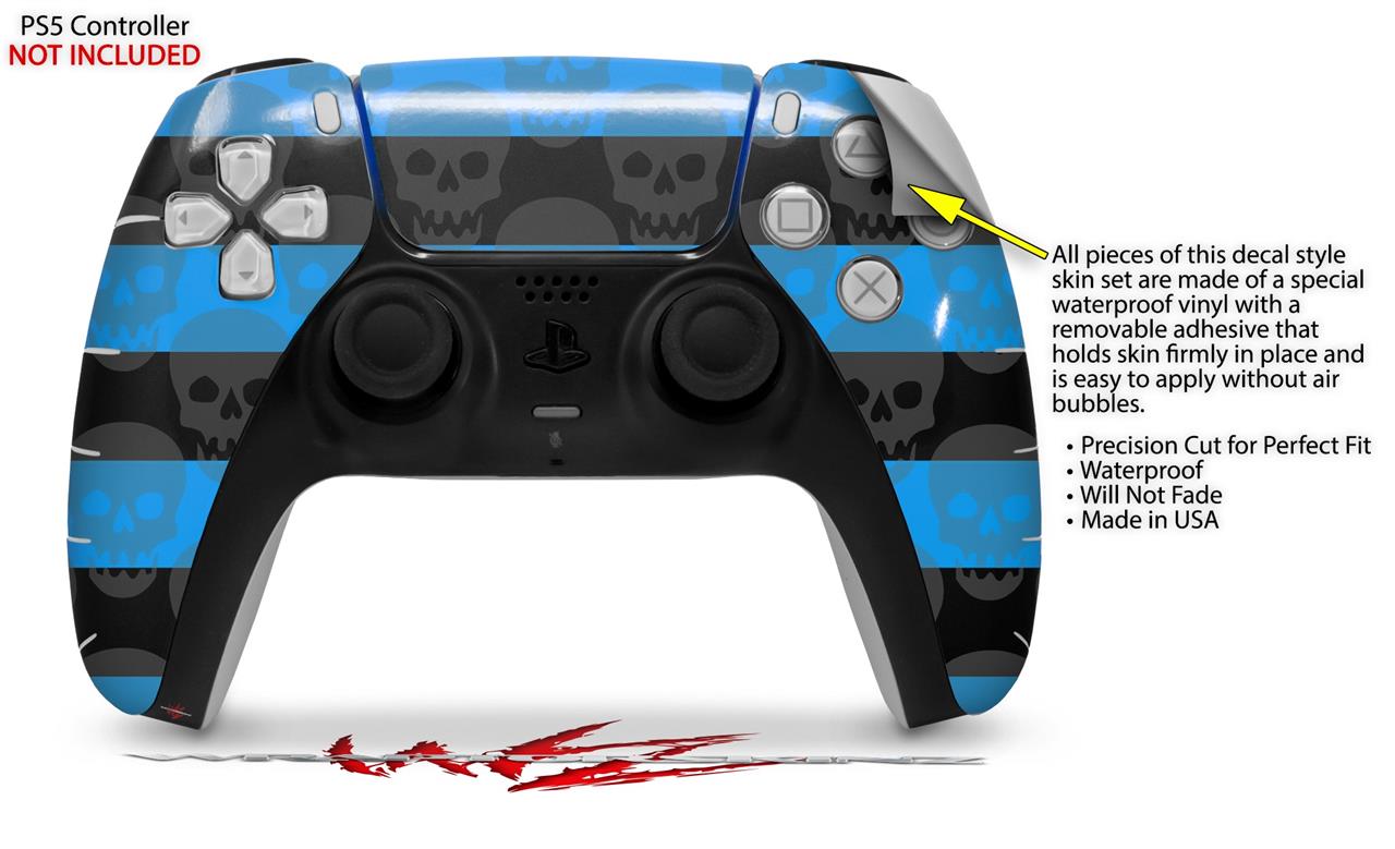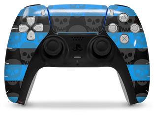 WraptorSkinz Skin Wrap compatible with the Sony PS5 DualSense Controller Skull Stripes Blue (CONTROLLER NOT INCLUDED)