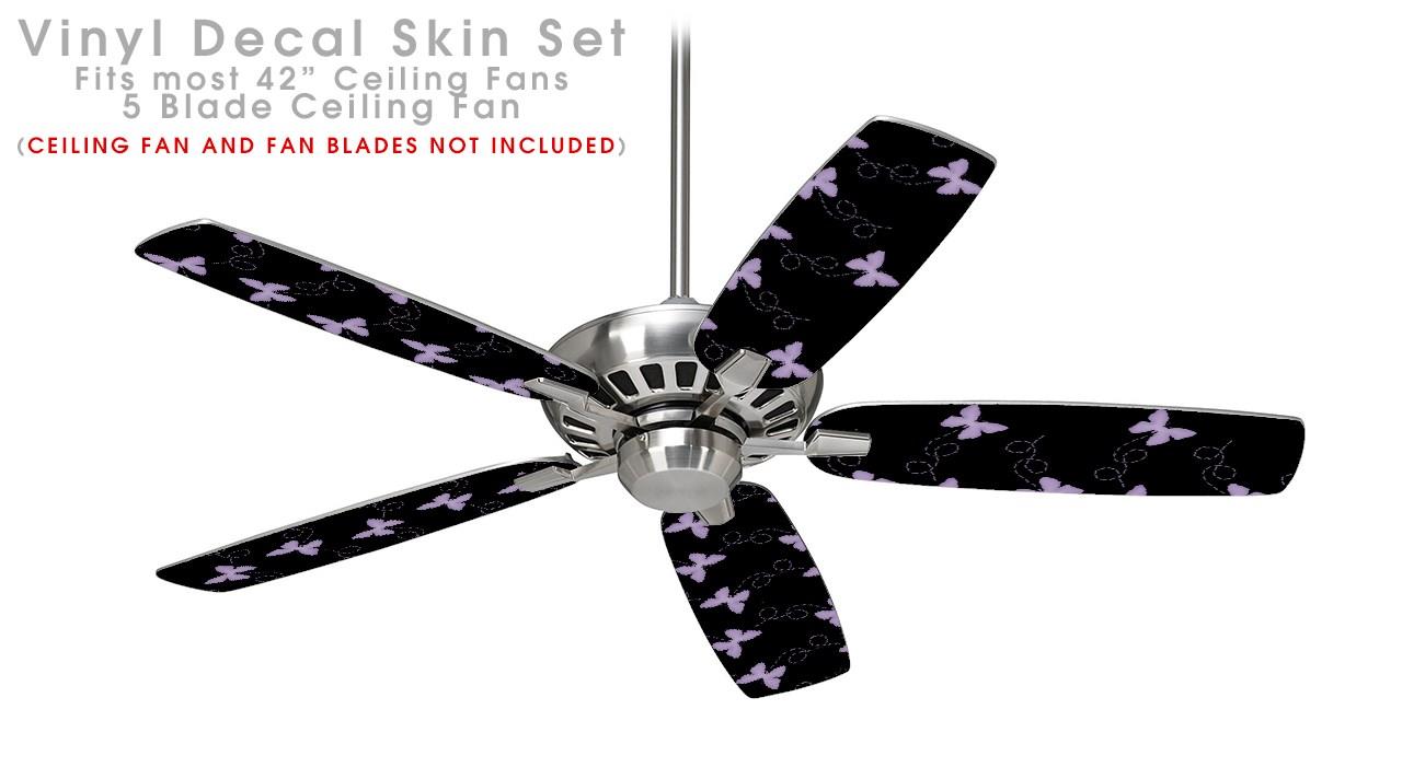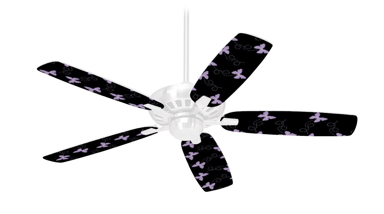 Pastel Butterflies Purple on Black - Ceiling Fan Skin Kit fits most 42 inch fans (FAN and BLADES SOLD SEPARATELY)