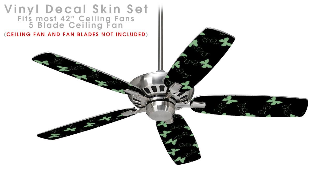 Pastel Butterflies Green on Black - Ceiling Fan Skin Kit fits most 42 inch fans (FAN and BLADES SOLD SEPARATELY)