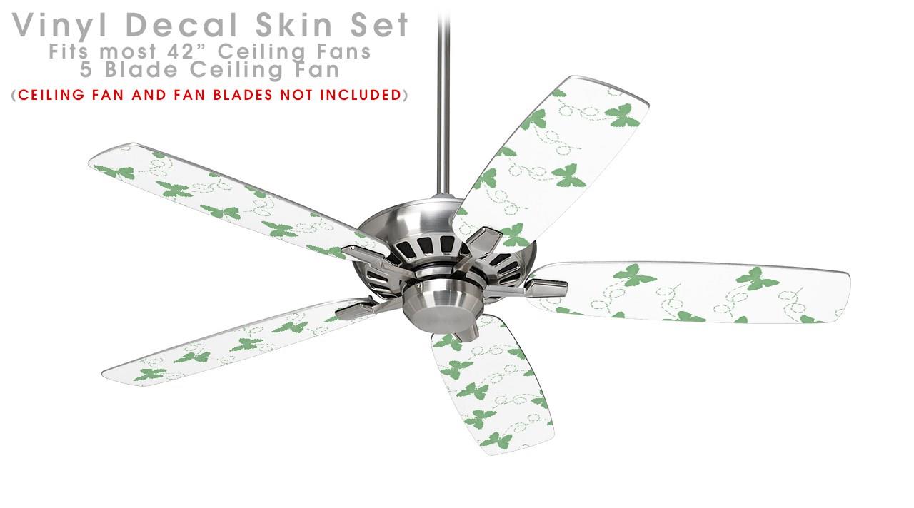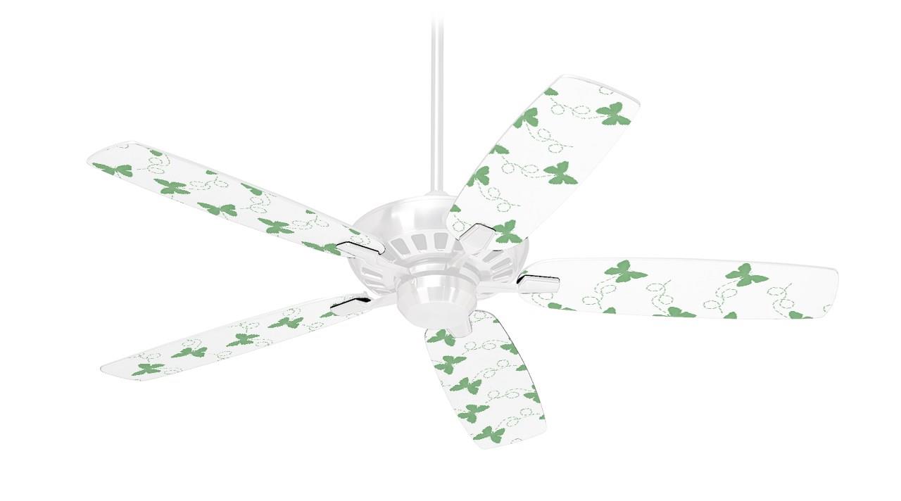 Pastel Butterflies Green on White - Ceiling Fan Skin Kit fits most 42 inch fans (FAN and BLADES SOLD SEPARATELY)