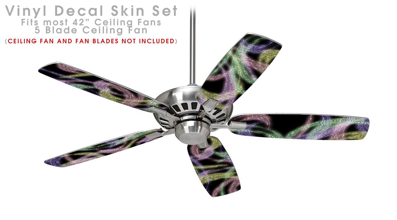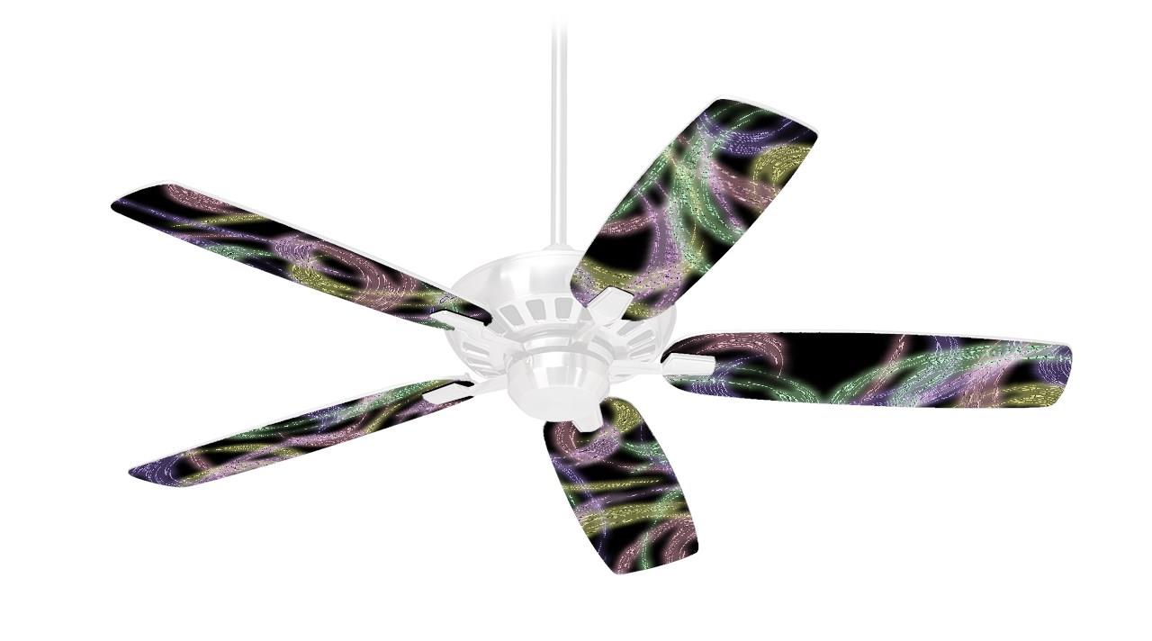 Neon Swoosh on Black - Ceiling Fan Skin Kit fits most 42 inch fans (FAN and BLADES SOLD SEPARATELY)