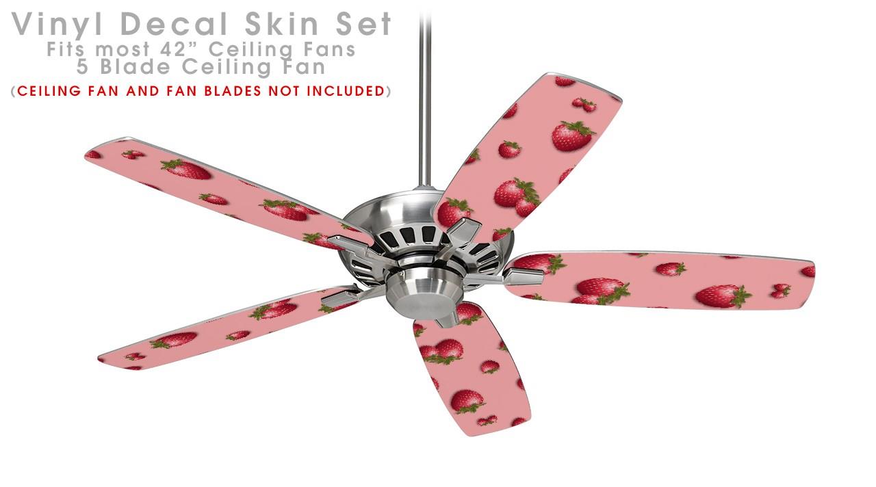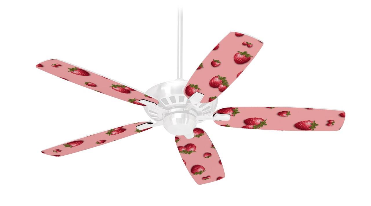 Strawberries on Pink - Ceiling Fan Skin Kit fits most 42 inch fans (FAN and BLADES SOLD SEPARATELY)