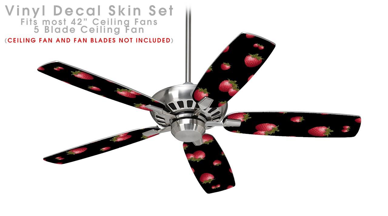Strawberries on Black - Ceiling Fan Skin Kit fits most 42 inch fans (FAN and BLADES SOLD SEPARATELY)