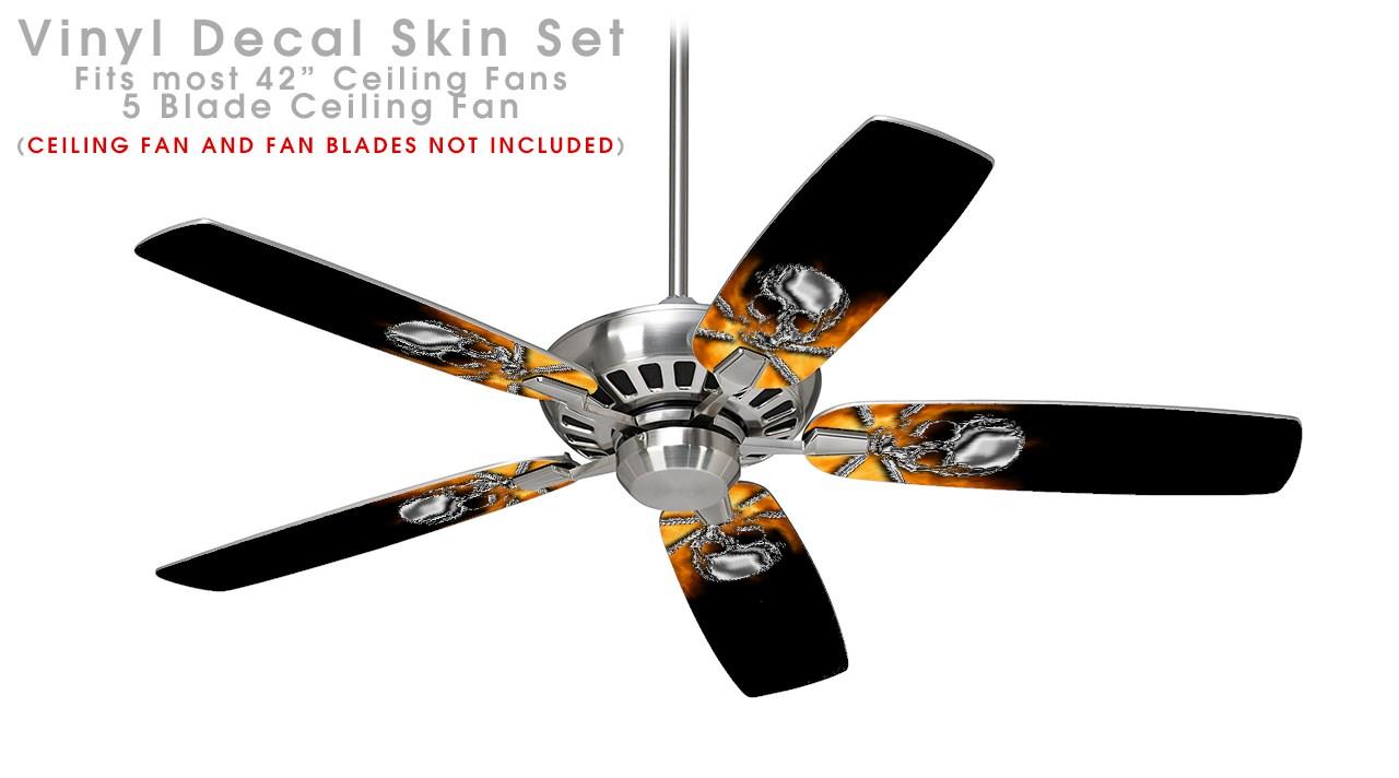Chrome Skull on Fire - Ceiling Fan Skin Kit fits most 42 inch fans (FAN and BLADES SOLD SEPARATELY)