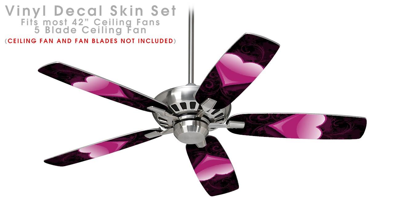 Glass Heart Grunge Hot Pink - Ceiling Fan Skin Kit fits most 42 inch fans (FAN and BLADES SOLD SEPARATELY)