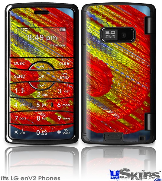Skin covers front and back of LG enV2 cell phone.