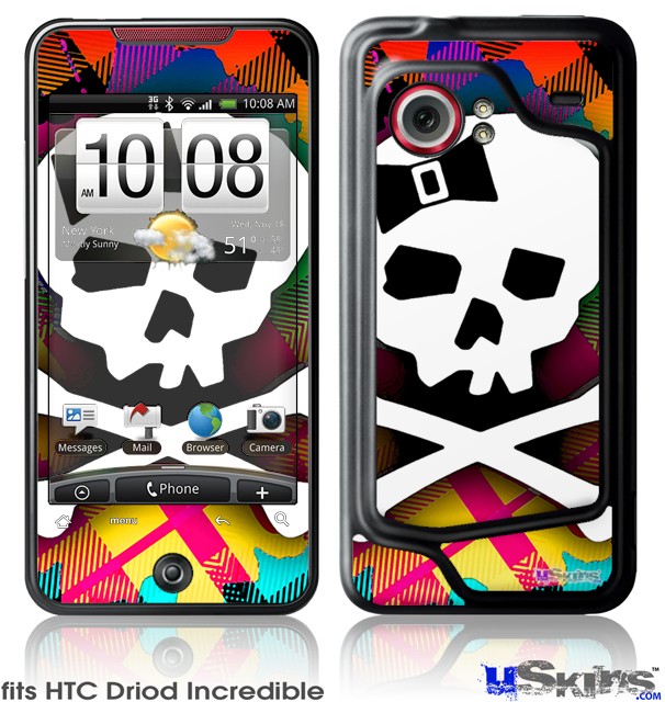 HTC Droid Incredible Skin - Rainbow Plaid Skull