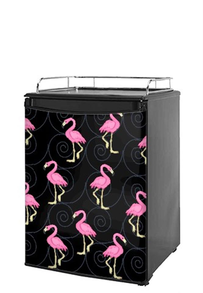 Kegerator Skin - Flamingos on Black (fits medium sized dorm fridge and kegerators)