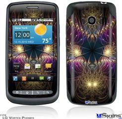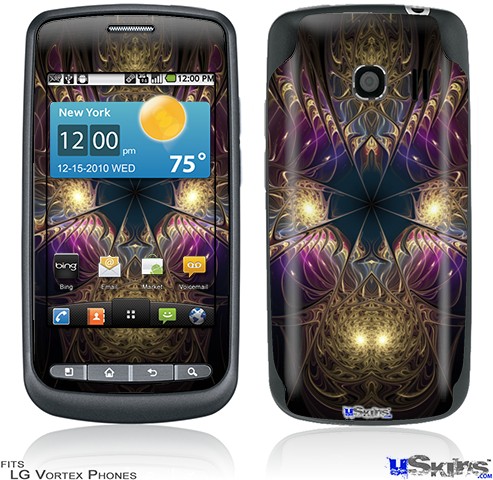Skin covers front and back of LG Vortex cell phone.