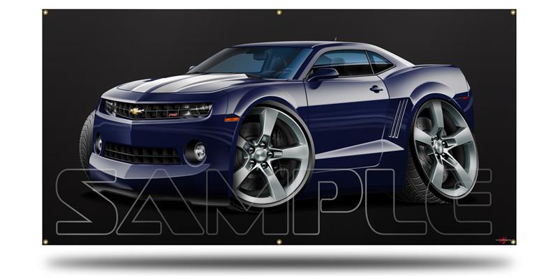 2010 Camaro RS Blue Dark on Black Garage Decor Shop Banner 36"x72"