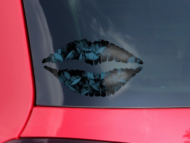 Lips Decal 9x5.5 Skulls Confetti Blue