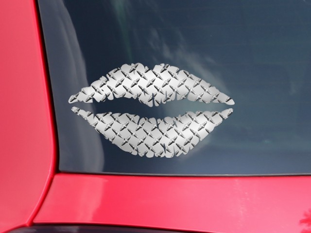 Lips Decal 9x5.5 Diamond Plate Metal