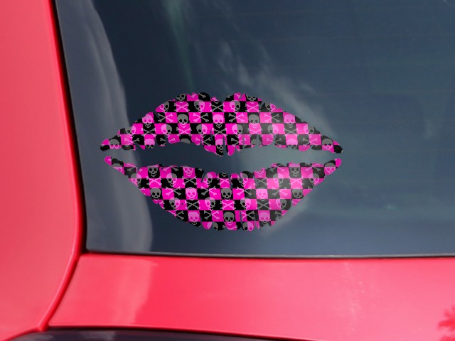 Lips Decal 9x5.5 Skull Crossbones Checkerboard