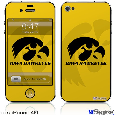 iPhone 4S Decal Style Vinyl Skin - Iowa Hawkeyes Herkey Black on Gold