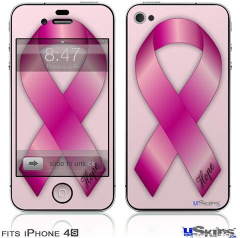 iPhone 4S Decal Style Vinyl Skin - Hope Breast Cancer Pink Ribbon on Pink