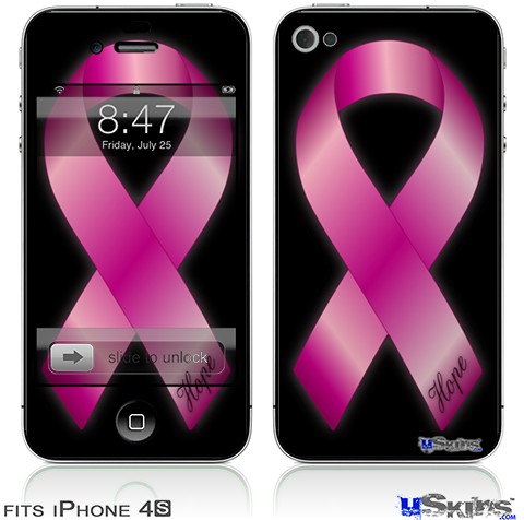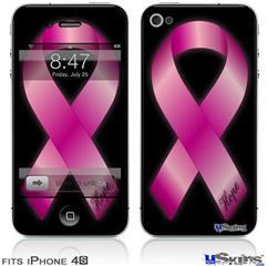 iPhone 4S Decal Style Vinyl Skin - Hope Breast Cancer Pink Ribbon on Black