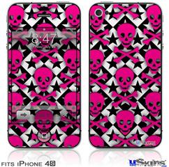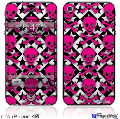 iPhone 4S Decal Style Vinyl Skin - Pink Skulls and Stars