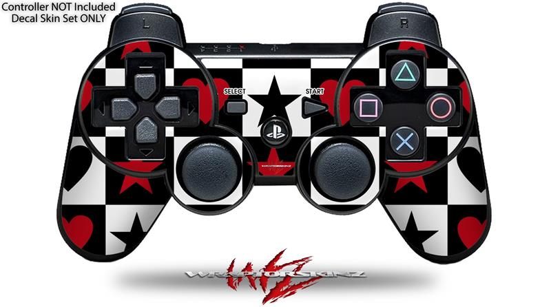 Sony PS3 Controller Decal Style Skin - Hearts and Stars Red (CONTROLLER NOT INCLUDED)