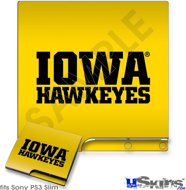 Decal Skin compatible with Sony PS3 Slim Iowa Hawkeyes 01 Black on Gold