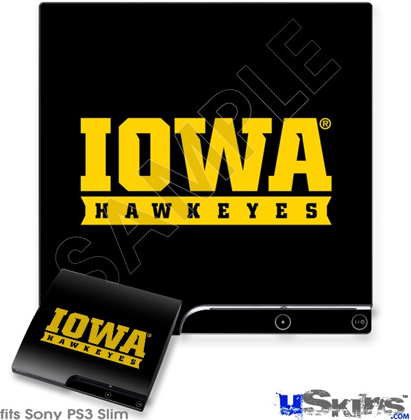 Decal Skin compatible with Sony PS3 Slim Iowa Hawkeyes 03 Black on Gold