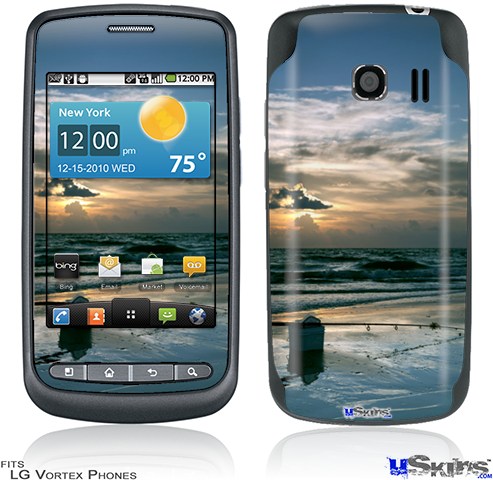 • Skin covers front and back of LG Vortex cell phone.
