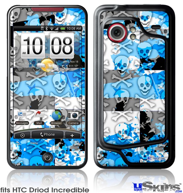 HTC Droid Incredible Skin - Checker Skull Splatter Blue