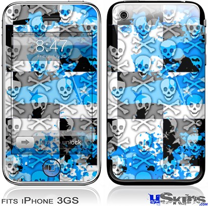 iPhone 3GS Skin - Checker Skull Splatter Blue