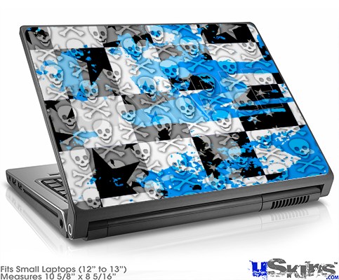 Laptop Skin (Small) - Checker Skull Splatter Blue