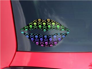 Lips Decal 9x5.5 Skull and Crossbones Rainbow