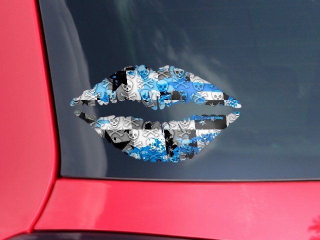 Lips Decal 9x5.5 Checker Skull Splatter Blue
