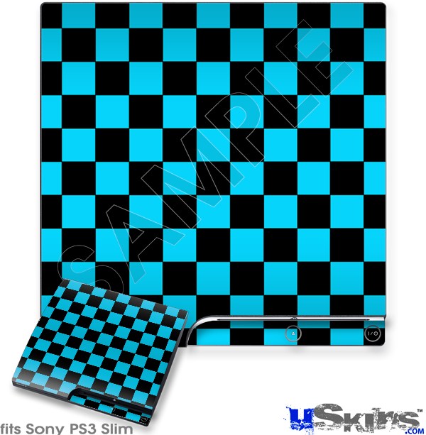 Decal Skin compatible with Sony PS3 Slim Checkers Blue