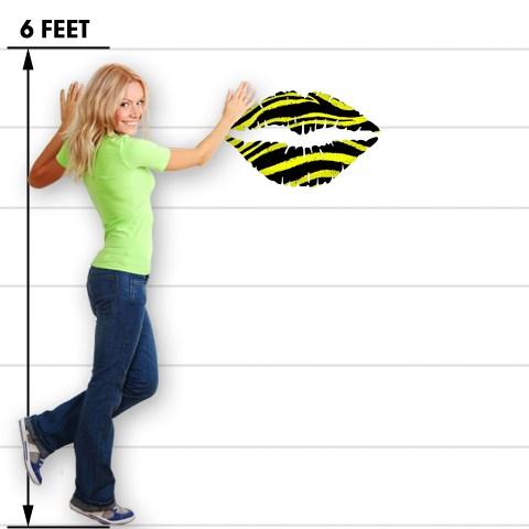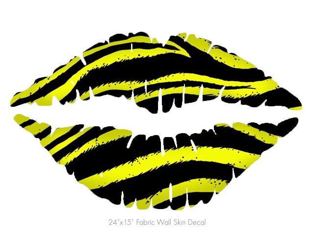 Zebra Yellow - Kissing Lips Fabric Wall Skin Decal measures 24x15 inches