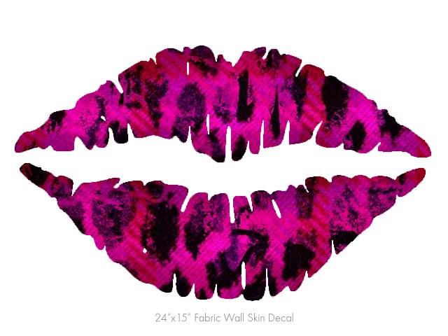 Pink Distressed Leopard - Kissing Lips Fabric Wall Skin Decal measures 24x15 inches