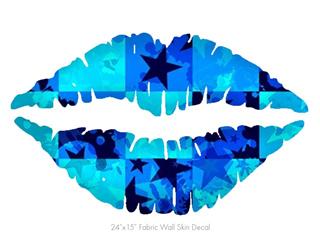 Blue Star Checkers - Kissing Lips Fabric Wall Skin Decal measures 24x15 inches