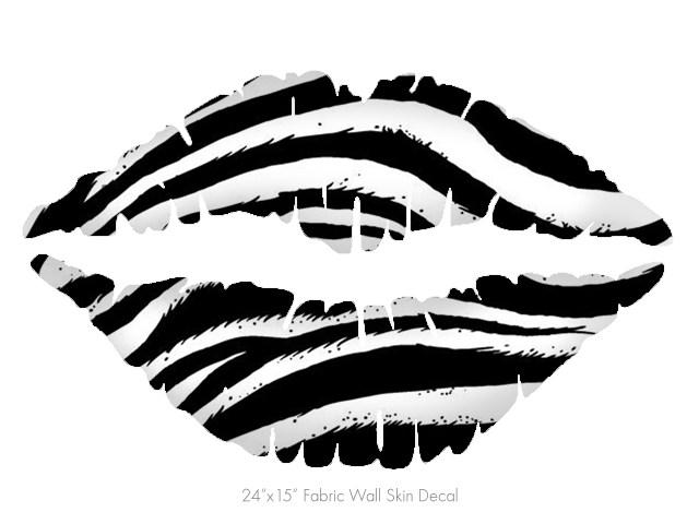 Zebra - Kissing Lips Fabric Wall Skin Decal measures 24x15 inches