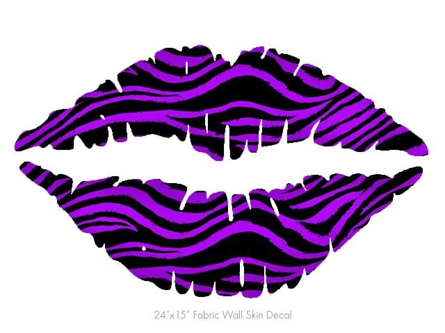 Purple Zebra - Kissing Lips Fabric Wall Skin Decal measures 24x15 inches