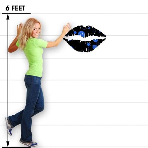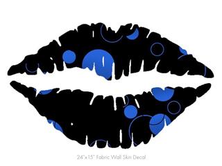 Lots of Dots Blue on Black - Kissing Lips Fabric Wall Skin Decal measures 24x15 inches