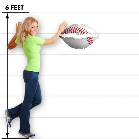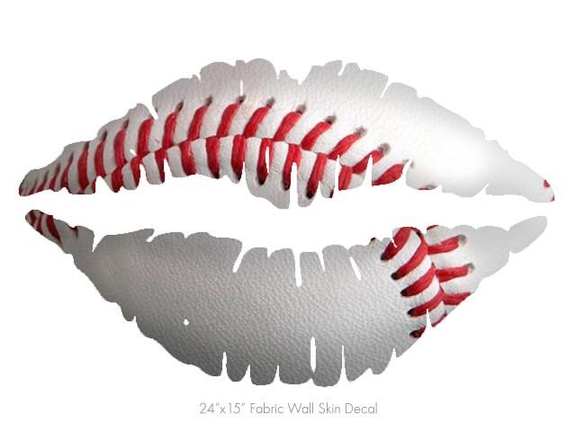 Baseball - Kissing Lips Fabric Wall Skin Decal measures 24x15 inches