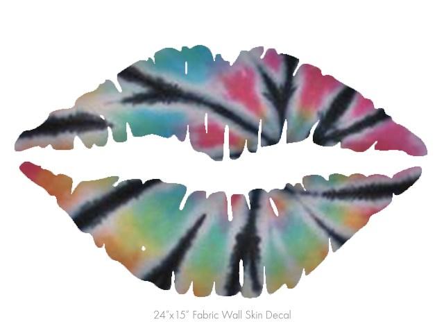 Tie Dye Swirl 109 - Kissing Lips Fabric Wall Skin Decal measures 24x15 inches