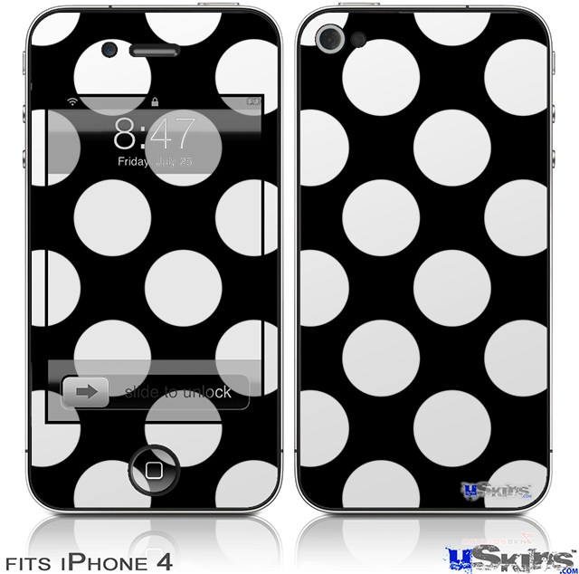 iPhone 4 Decal Style Vinyl Skin - Kearas Polka Dots White On Black (DOES NOT fit newer iPhone 4S)