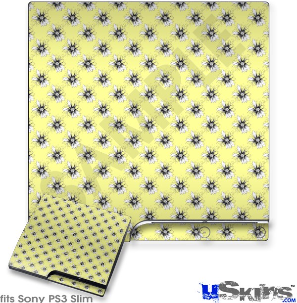 Decal Skin compatible with Sony PS3 Slim Kearas Daisies Yellow
