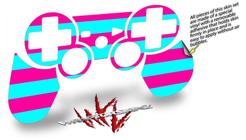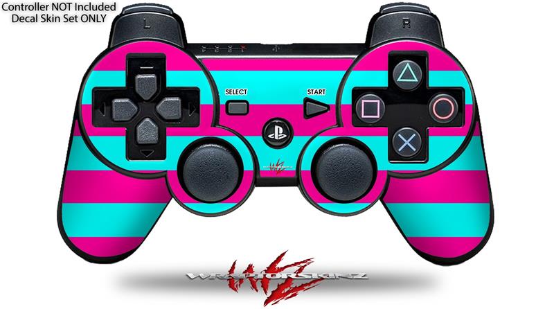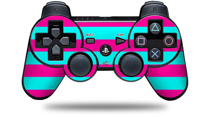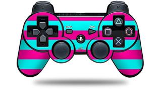 Sony PS3 Controller Decal Style Skin - Psycho Stripes Neon Teal and Hot Pink (CONTROLLER NOT INCLUDED)