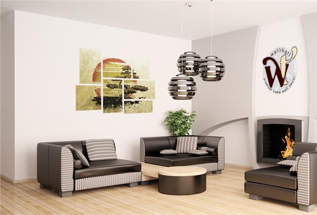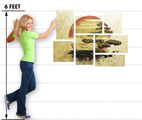 Bonsai Sunset - 7 Piece Fabric Peel and Stick Wall Skin Art (50x38 inches)