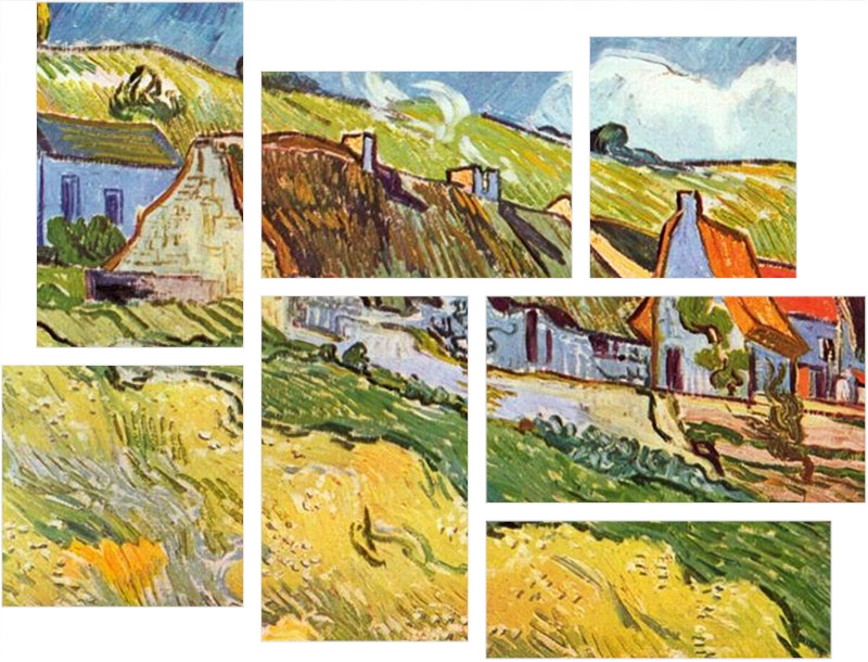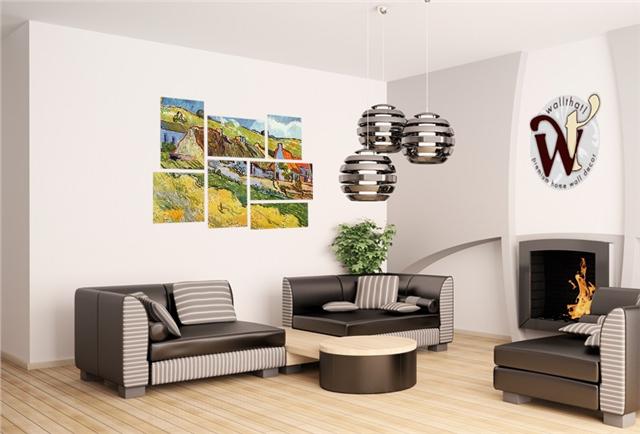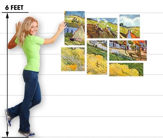 Vincent Van Gogh Huts In Auvers - 7 Piece Fabric Peel and Stick Wall Skin Art (50x38 inches)